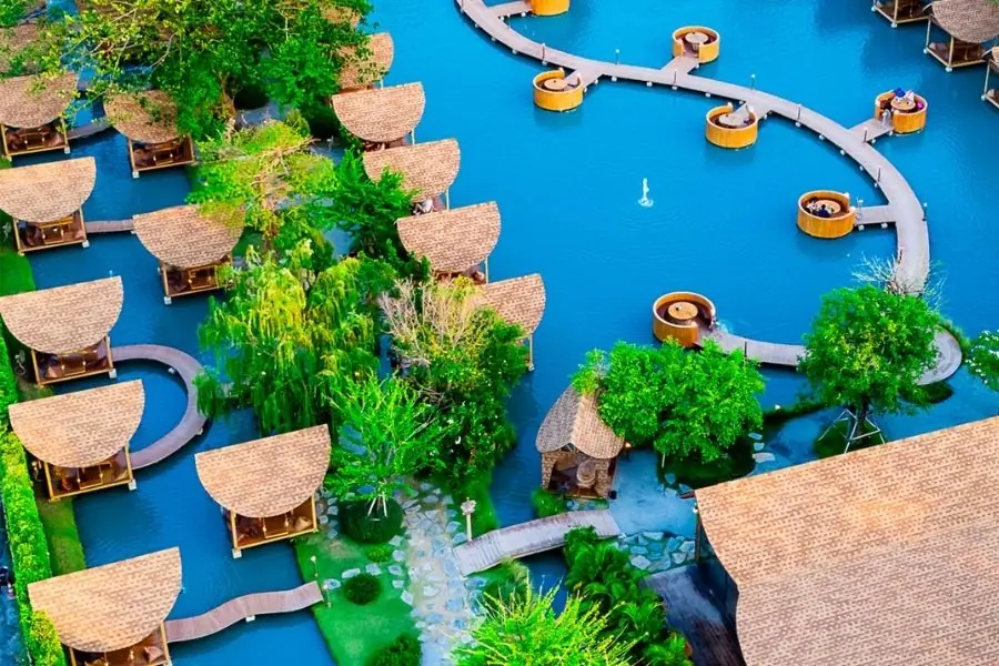 Il pezzo forte della giornata sarà la sosta al celebre Bubble in the Forest Cafe, soprannominato la “Maldives di Bangkok”. Questo caffè dal design straordinario offre tavoli posizionati su pedane sospese sopra un’acqua cristallina color turchese, circondati da una vegetazione lussureggiante. È il luogo perfetto per un pranzo gourmet o semplicemente per rilassarsi e scattare foto incredibili in una delle location più famose dei social media, prima di rientrare in città nel tardo pomeriggio.
