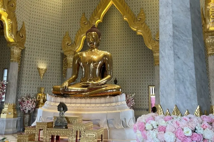 Visita al tempio che custodisce la statua di Buddha in oro massiccio più grande al mondo, un capolavoro dell’arte Sukhothai rimasto nascosto per secoli.