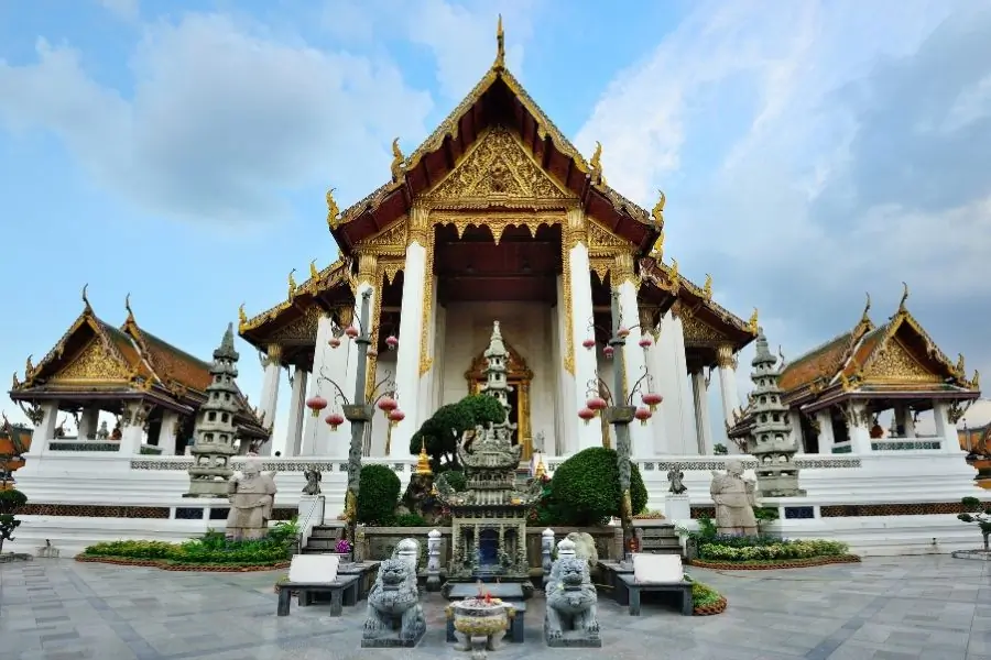 Iniziamo il pomeriggio ammirando uno dei templi più belli e particolari di Bangkok. Curiosità: è conosciuto come il “Tempio di Marmo” perché le sue pareti esterne sono state costruite utilizzando pregiato marmo bianco importato direttamente da Carrara, in Italia, per volere di Re Rama V. L’architettura è una fusione perfetta tra lo stile classico thailandese e influenze europee, come le splendide vetrate colorate.