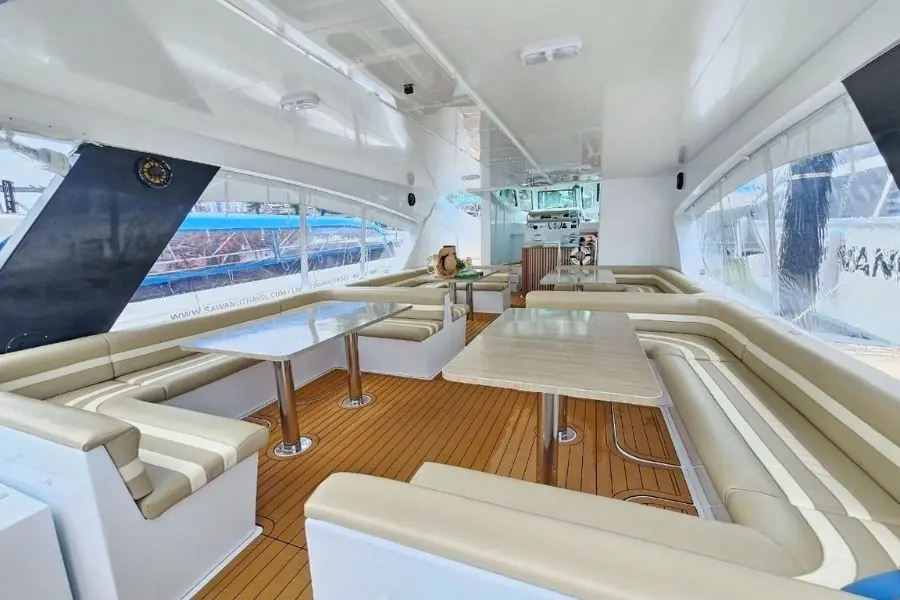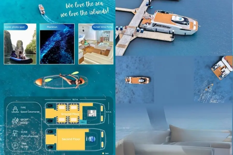 Vivi la magia assoluta della Baia di Phang Nga, Patrimonio dell’Umanità UNESCO, unendo l’avventura all’esclusività di un’elegante crociera pomeridiana guidata in lingua italiana. A bordo dell’Aurora Sea—un vero e proprio paradiso galleggiante dal design moderno dotato di ampie terrazze—navigherai nel massimo comfort tra le maestose e iconiche scogliere calcaree che si ergono verticalmente dalle acque color smeraldo.